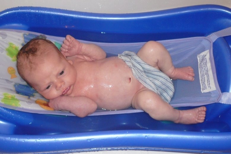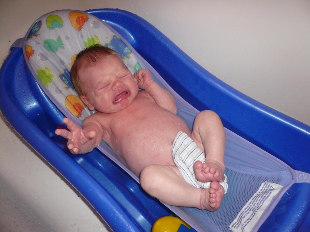 - First bath – cried for about a minute, then calmly enjoyed the warm water