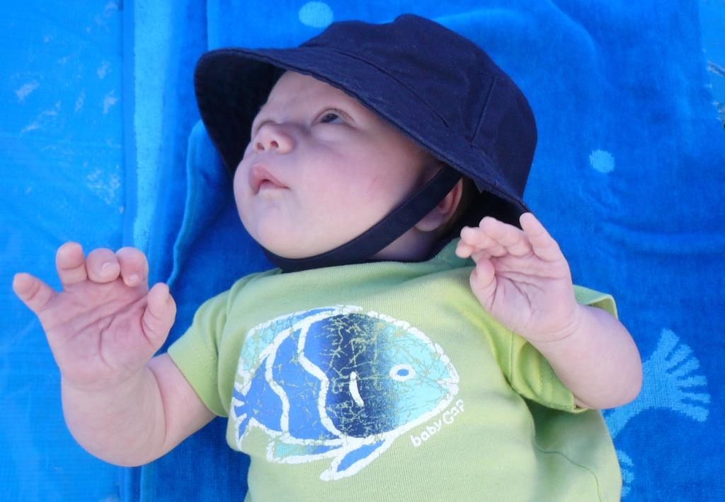 JT enjoying the beach from inside his sun dome