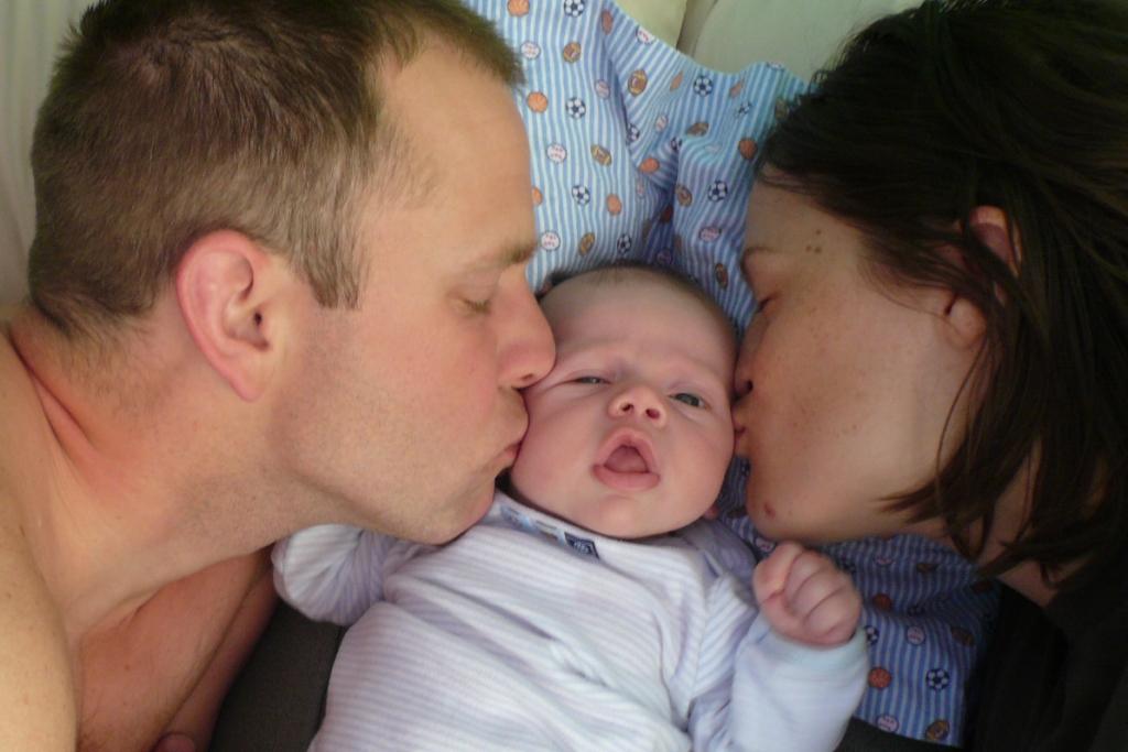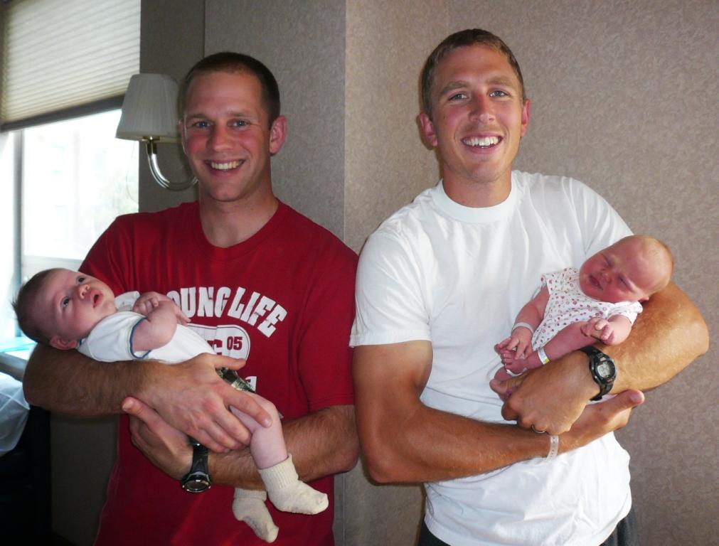 Two of our friends had babies last Saturday! Welcome to Liv Agedal and Hallie Lay. The picture below is of Liv and her dad Einar with Jim and JT. The funny thing is that Liv weighed exactly the same weight as JT when she was born and only two inches shorter, so you can really tell how much JT has grown in six weeks by this picture.