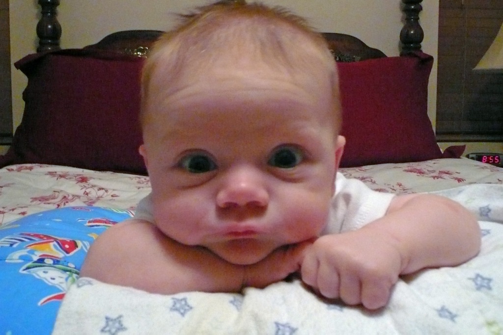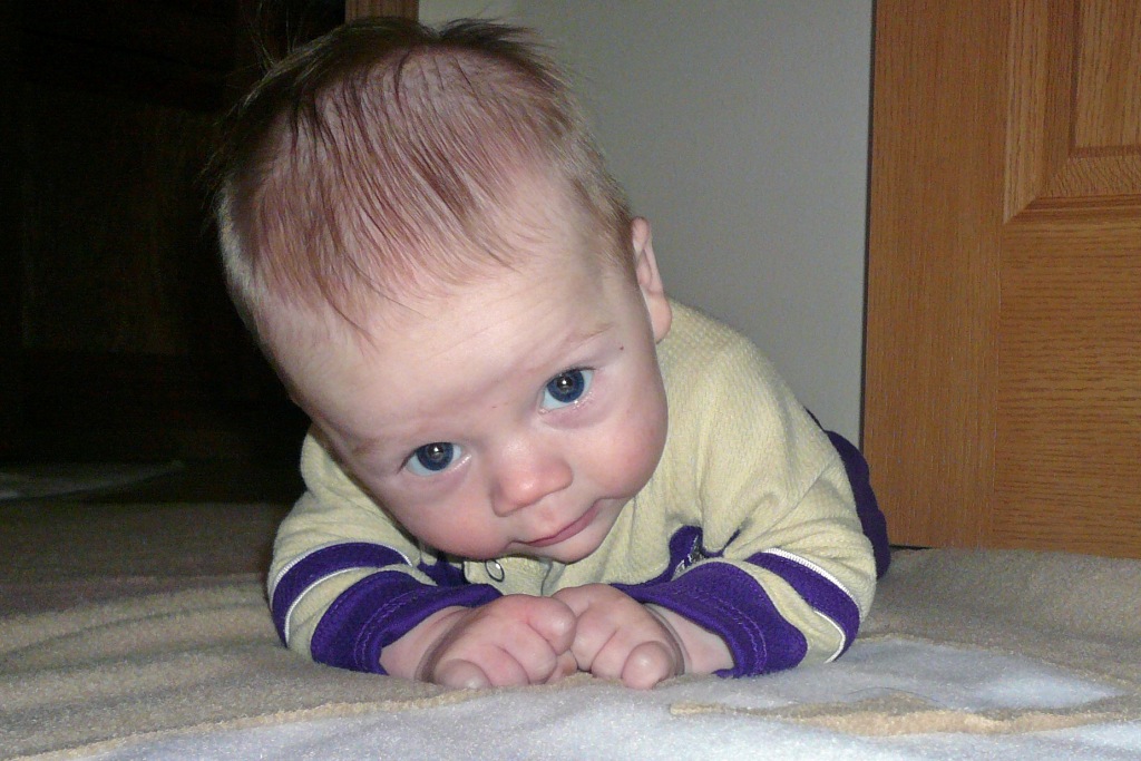 I’ve been doing my workout DVD at home about once a week, and this week I had JT on the floor while I exercised. I included him in my workout, and he loved it. His favorite move were Push-up Smooches. I have to admit, they almost made me forget how many I’d done.