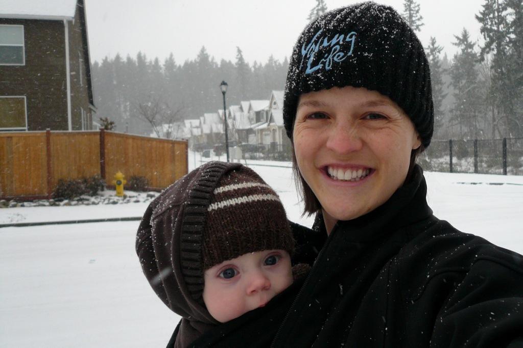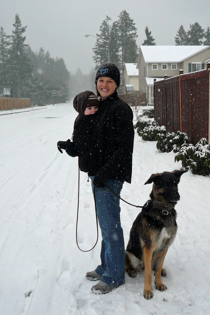 Slider, JT, and I finally got out of the house and took a walk in the snow today. Earlier in the week we were fairly housebound, since the temperature outside was in the teens. I didn’t think it was a good idea to expose my child to such elements. 🙂