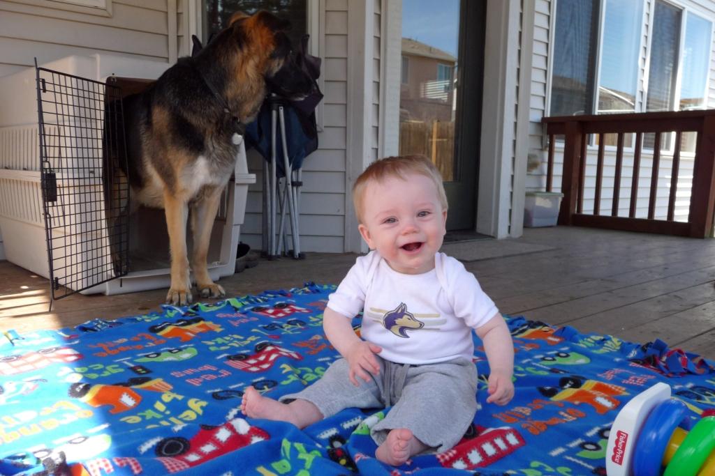 When we got home, JT spent some time on the deck while I ate lunch. He thought Slider was so funny when she went in her kennel to rest.