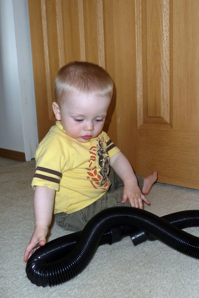 You may have noticed the buzz cut. JT was sadly overdue for a trim, and Jim got out the clippers and the same guard as last time. We hadn’t noticed how much JT’s hair had grown, and suddenly an inch and a half of handsome baby hair was sitting in a pile on the counter. Oops. We decided that next time it won’t get so short. But for now, we’ll just load up on sunscreen and skip the hair brush.