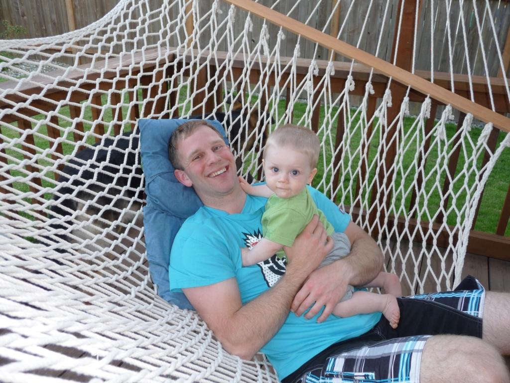 Helping Dad barbecue dinner means swinging in the hammock until the steaks are done!