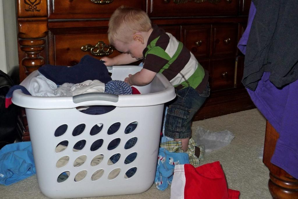 Here he is helping with the laundry and getting ready to go in the car.