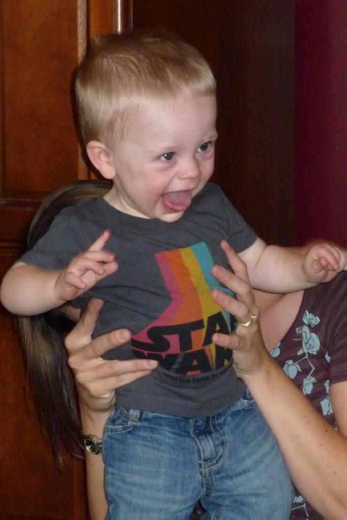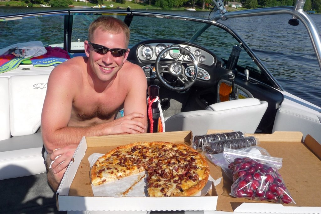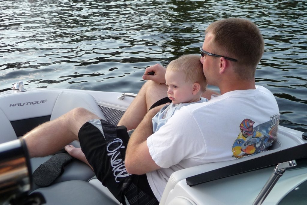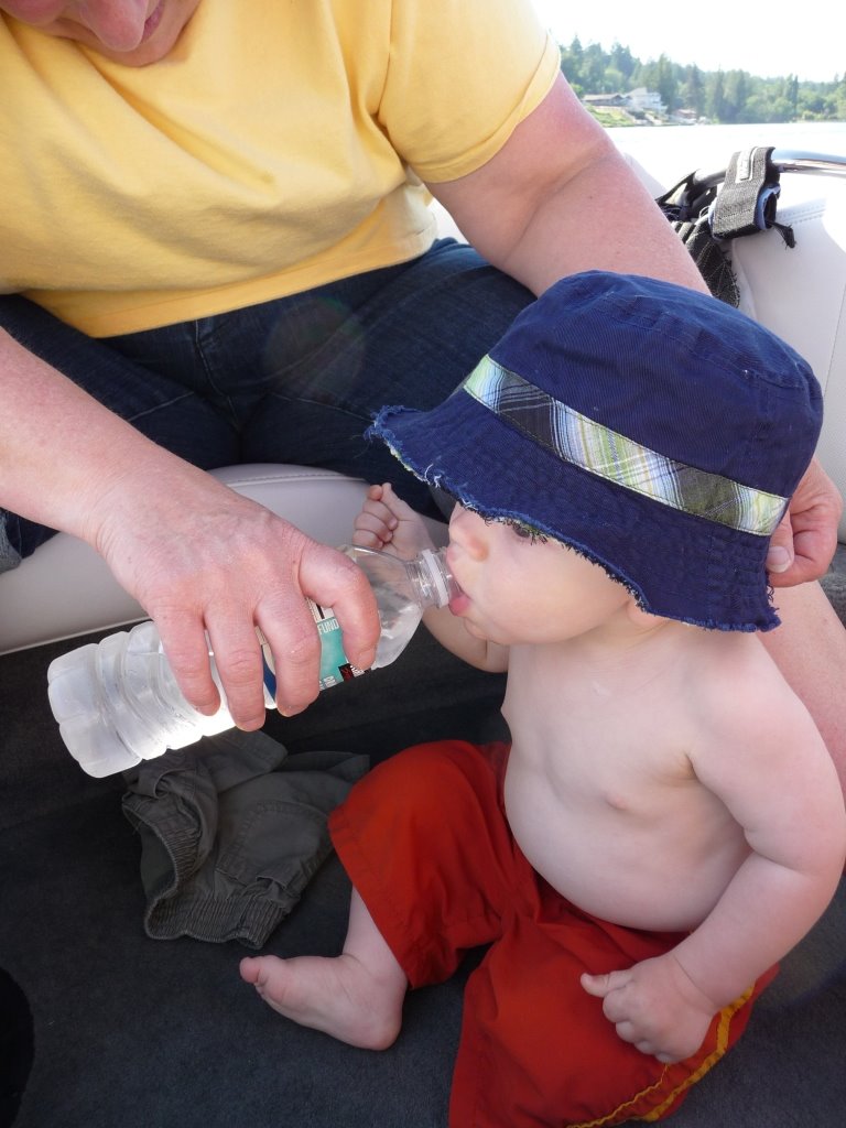 Around dinner time, Grandma Keene delivered hot Spiro’s pizza to the boat. JT figured out how to drink out of Grandma’s water bottle, so you can guess where all her water went. At least he stayed hydrated. π