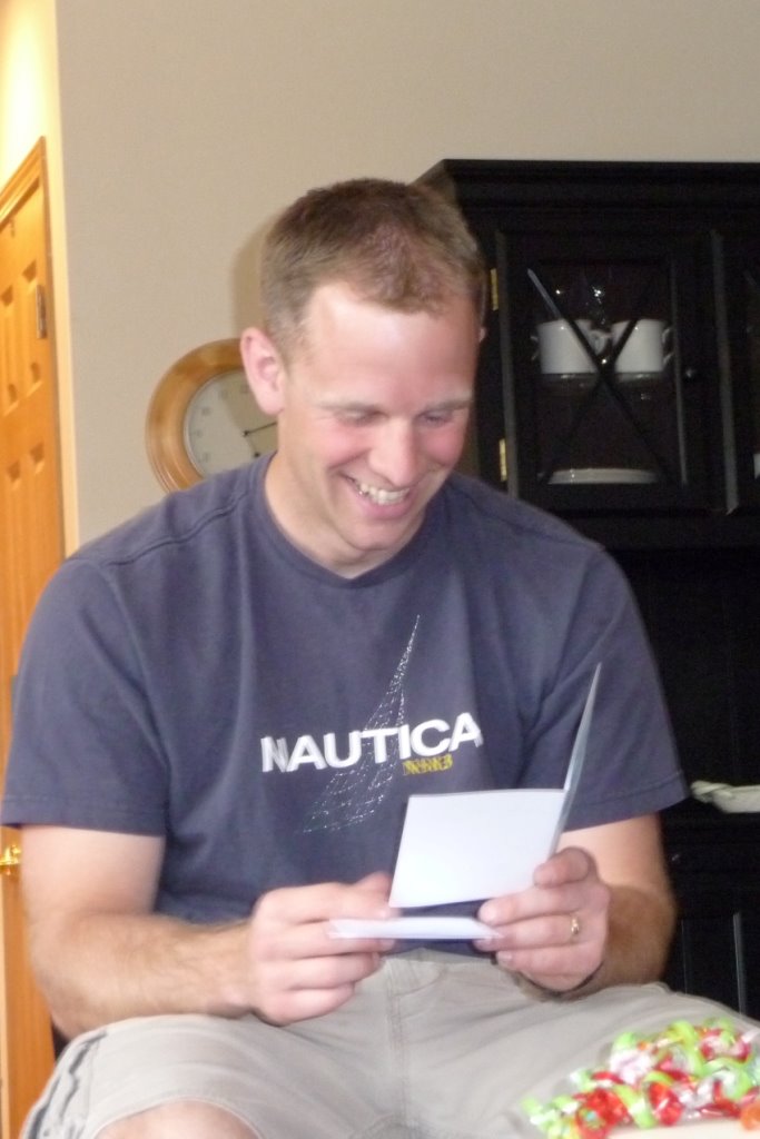 First things first… here is JT giving Dad his birthday present: new board shorts to wear in the boat.