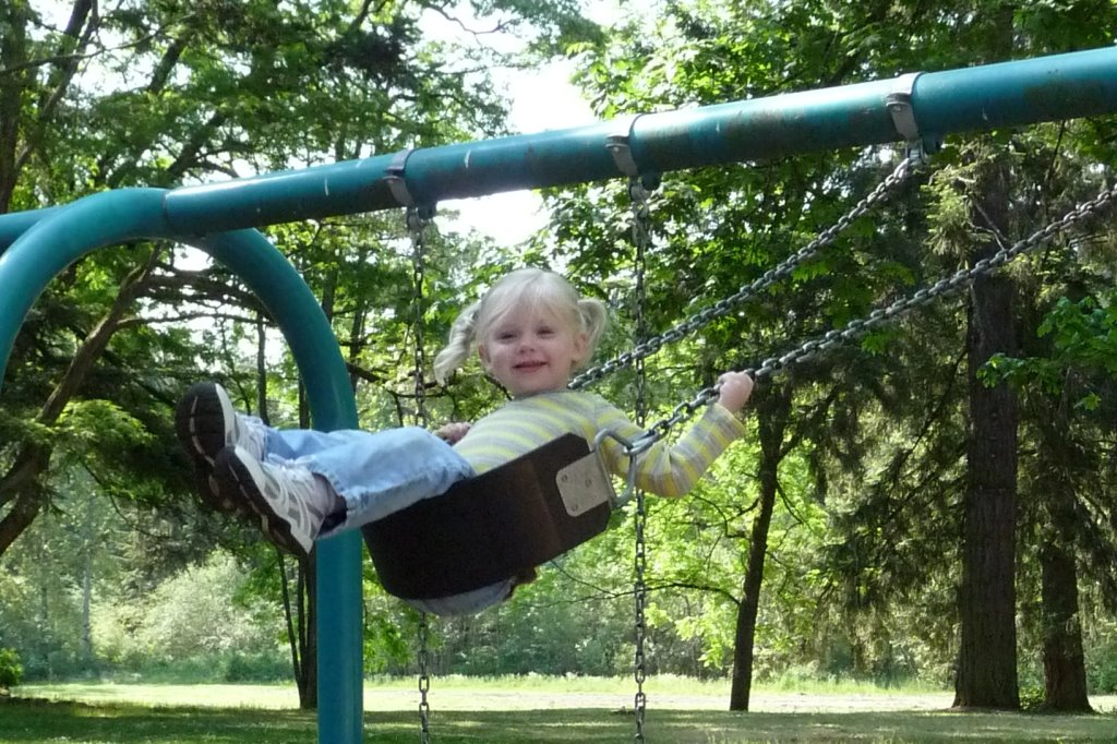 Here is Jim teaching Aly to pump her legs “just like Rachel” (Aly’s cousin). Both kids liked going high on the swings. It is amazingly difficult to get pictures of smiling kids on swings. Thank goodness for digital… fifty shots later, I had a couple that I liked!