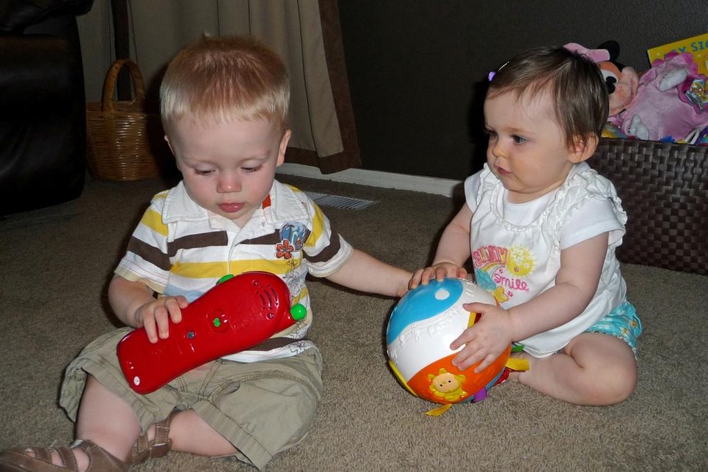 Hallie is only six weeks younger than JT. They got to eat side-by-side and share toys. JT especially liked Hallie’s play phone. He doesn’t have one at our house, but he does have one at Grandma Cole’s. (Jim said, “Let’s keep it that way!”) Hallie did not appreciate JT tackling her. We apologized and told JT that he is only allowed to do that to bigger kids, like Asher and Cole.