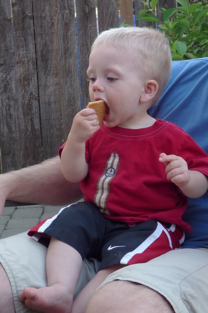 JT got to have a graham cracker instead of a s’more. He doesn’t know what he’s missing, so that’s okay. 🙂