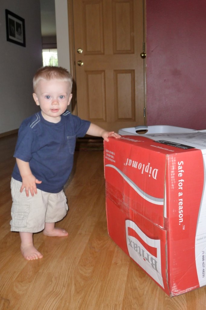 JT’s big birthday present came just in time, and we opened it up early: his new car seat! He technically outgrew his infant seat in length a couple of weeks ago, but we had to order this one online and wait for it to get here. He will still be rear facing for as long as possible, but it will be nice to have a bigger car seat. He was getting a little squished!