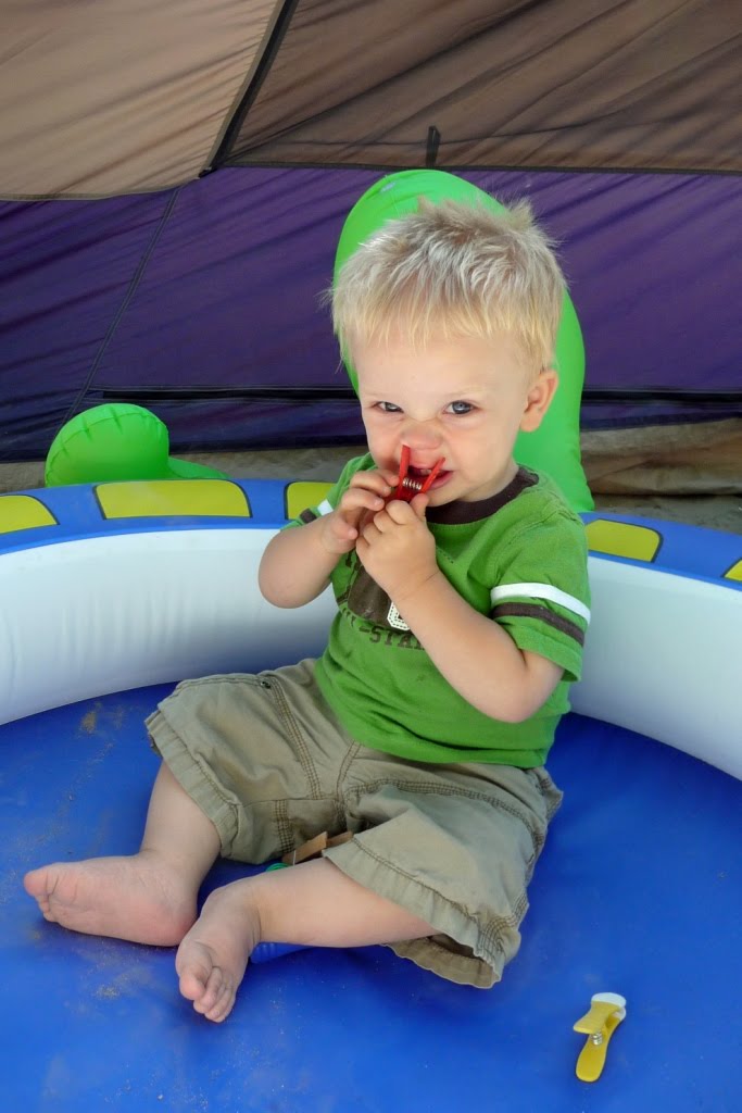 JT loved playing with Grandma’s clothespins