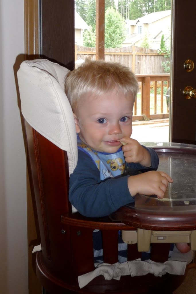 JT has been doing a great job taking bites of things and chewing before swallowing. This has allowed him to try out some new things. Here he is eating cucumber spears. Yum!