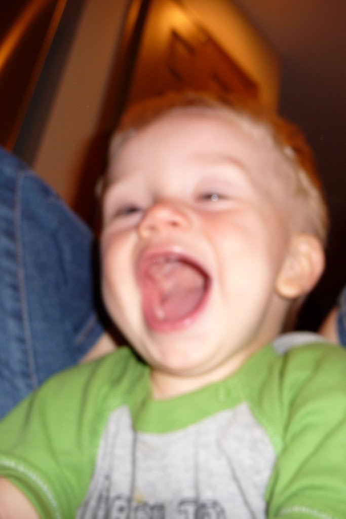 Meanwhile, JT has recovered from his TWO sinus infections and his fifth tooth has broken through… so he is feeling much better. I didn’t notice how quiet he had gotten during all that, but now he is a goofy chatterbox again. For example, here he has tackled me to the ground in the kitchen. Fuzzy, but funny.