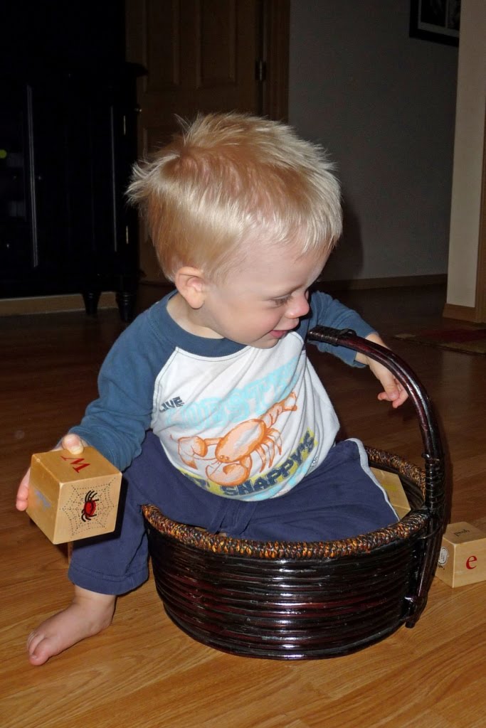 Then he decided to crawl inside the block basket. He thought that was very funny!