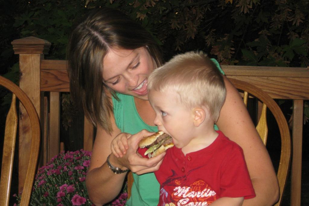 The men were so hungry from working on the truck that Uncle Mark broke out a big box of hamburgers and lit up the grill. JT got a taste of my double stack and he loved it. That’s our little carnivore! π