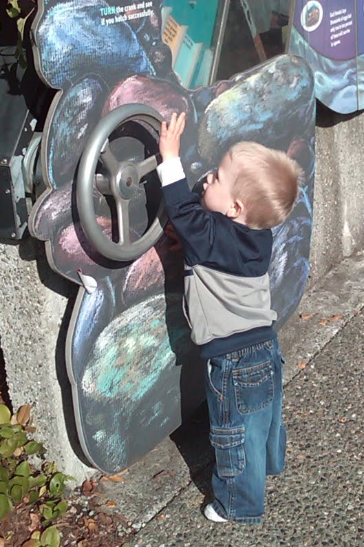 JT takes his chances in the Wheel-o-Death for baby salmon.