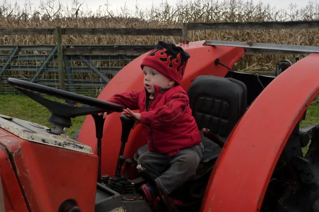 JT loved the tractor. He knew just what to do with the knobs and the steering wheel.