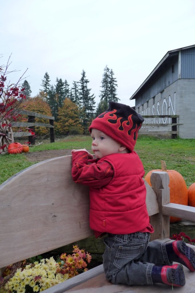 Our friends the Shucks invited JT and I to go with them to Thomasson Family Farm this afternoon. The weather was cold and wet, but it didn’t rain on us until we were leaving – phew! It is tough to get a picture of JT smiling without Jim around, but we got some great shots anyway.