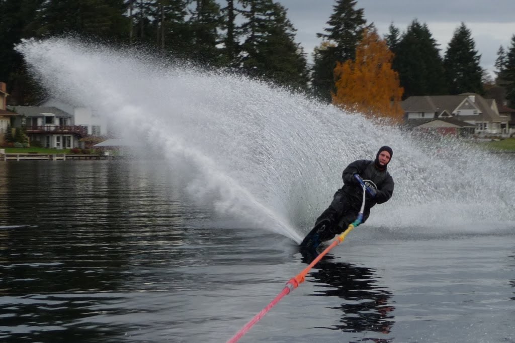 We are lucky enough to keep our boat on a lift on Lake Meridian. The only downside to keeping your boat on a lift is when the lift battery dies… and your boat is stuck. So between that, work trips, rainy weather, and injuries, we haven’t skiied in awhile. Fortunately, all it took to get us back on the water was a dry day, a new battery, and some help from our friend Adam, who braved the gap between the dock and the battery box with his ladder.