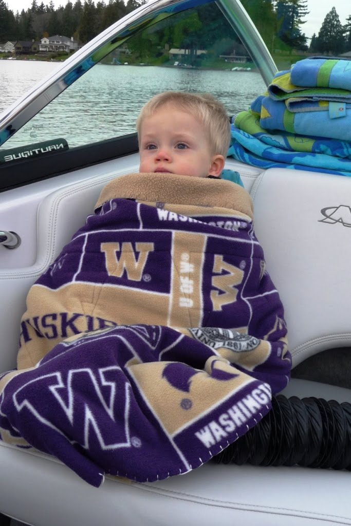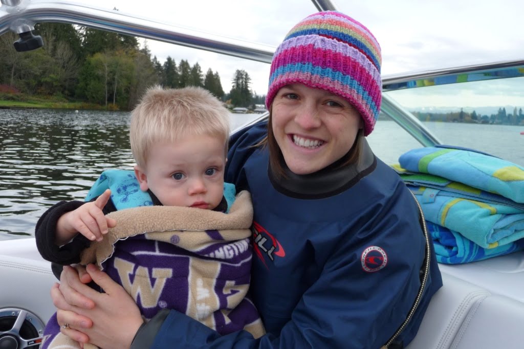 JT snuggled up in his life vest and sat in this spot while all three of us skiied.