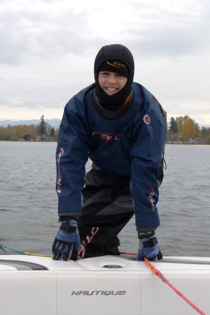 I decided to wear a fleece hat under the neoprene ski hood… best decision ever. My head stayed warm and dry (even when I fell!) and so the cold water wasn’t an issue at all.