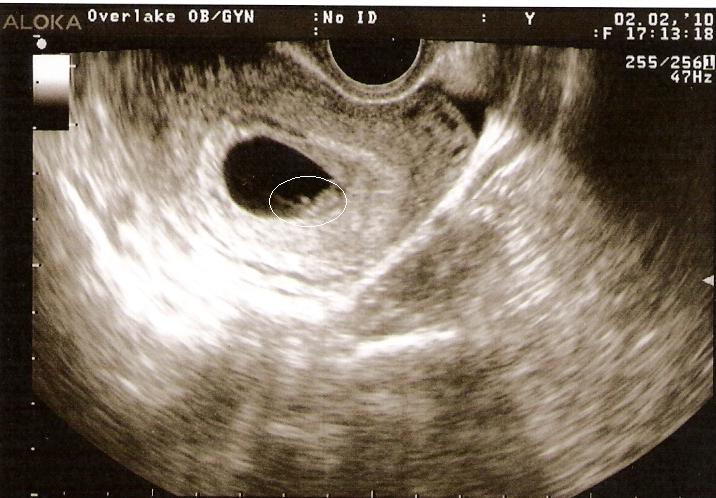 We had our first doctor appointment on February 2nd, with an ultrasound to see the baby’s heartbeat. I had my prenatal blood work done, too. Our next ultrasound is March 8. Here’s Baby 2, circled, at seven weeks. Baby Keene #2 is much bigger now: about the size of a kumquat.
