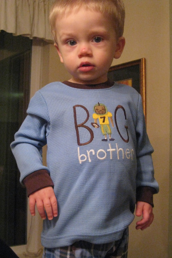 Congratulations! How fun! No fair though, I was looking for a big brother shirt to tell Tim about our new little addition on the way and could not find one in this town. But great idea:)