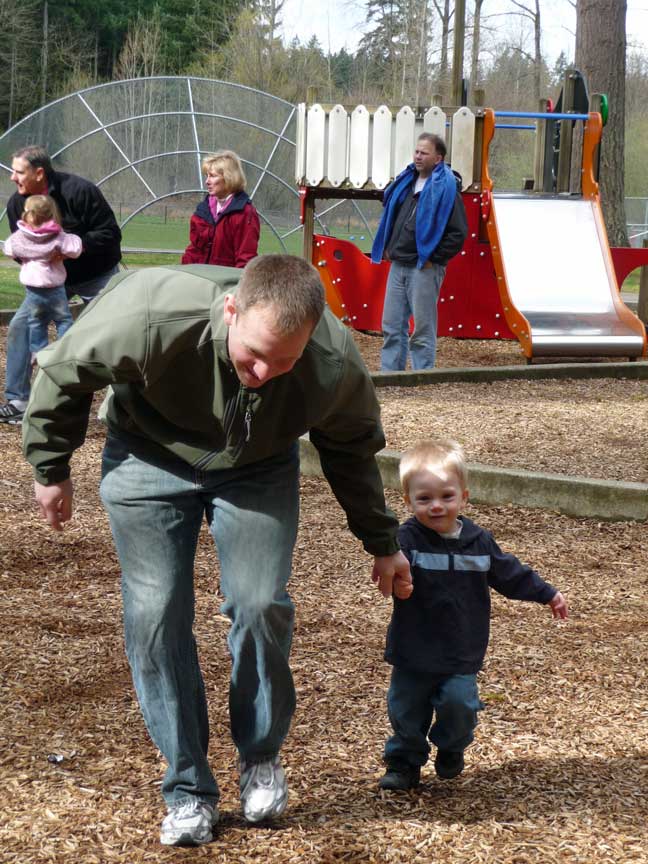 So I slept in a little – awesome – while Jim got up with JT and made a yummy breakfast of waffles. Then we took advantage of a break in the weather and headed to the local park.