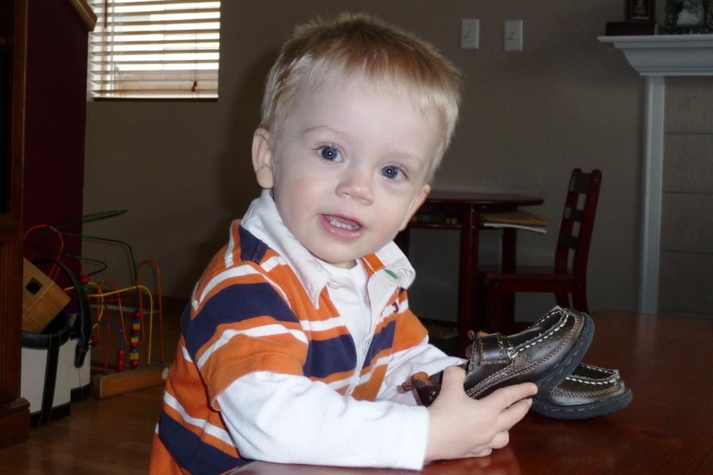 But I doubt you’re here to read about us… on to JT. He is absolutely addicted to putting shoes on. If there are shoes in his vicinity, watch out, they’re going on his feet – no matter the size.