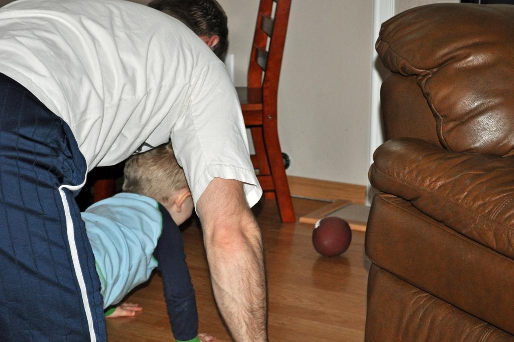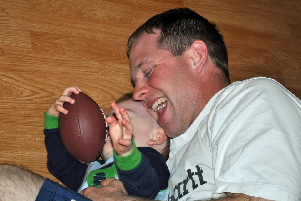 Football Posted bywe4keenesMay 9, 2010Posted inUncategorized If you didn’t already notice, JT loves playing football with Dad. They practice hiking, receiving, and recovering fumbles. JT is very good at hiking but not so great at receiving. The other day the ball hit him in the face. š Related