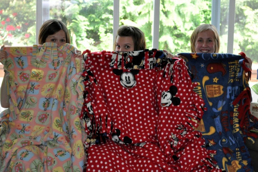 One of the fun things about our triple shower was opening identical presents. Elizabeth is having a boy, and I’m having a girl, and Marissa doesn’t know yet, so there were blue, pink, and green bows all over everything. We did get some things that didn’t match, which was great too… like when I opened the most adorable Mary Jane Robeez I’ve ever seen from Aunt Merrie and a gorgeous blue and brown floral baby blanket with soft, soft white on the other side from Cassie.