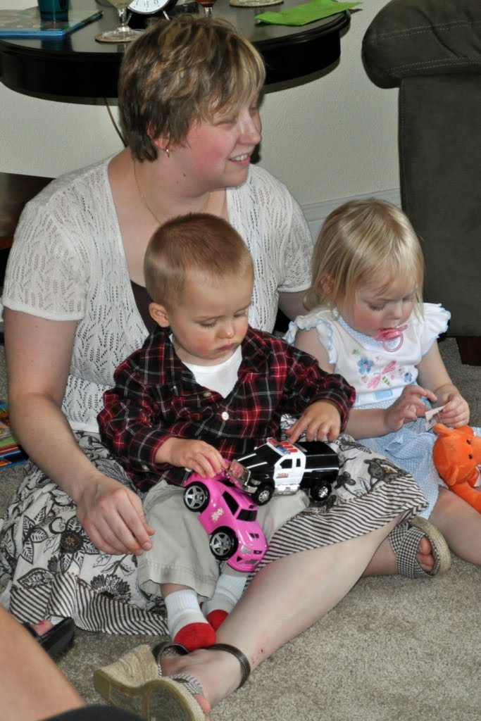 Rebecca keeps the children occupied (including her daughter, Savannah)