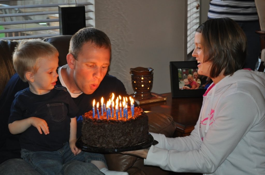 We decided to have an impromptu birthday party for Jim’s 31st at our house on Memorial Day. We invited our families and the Skagens (and the Shucks… but they’re still contagious with norovirus so they declined). Even though JT was running a fever (see below), he put up a good front and we all had a great time!