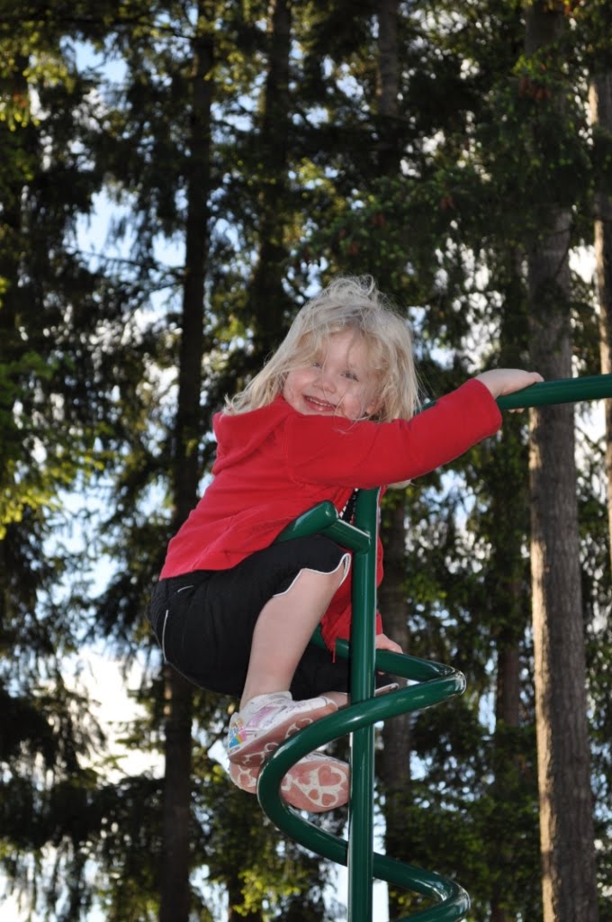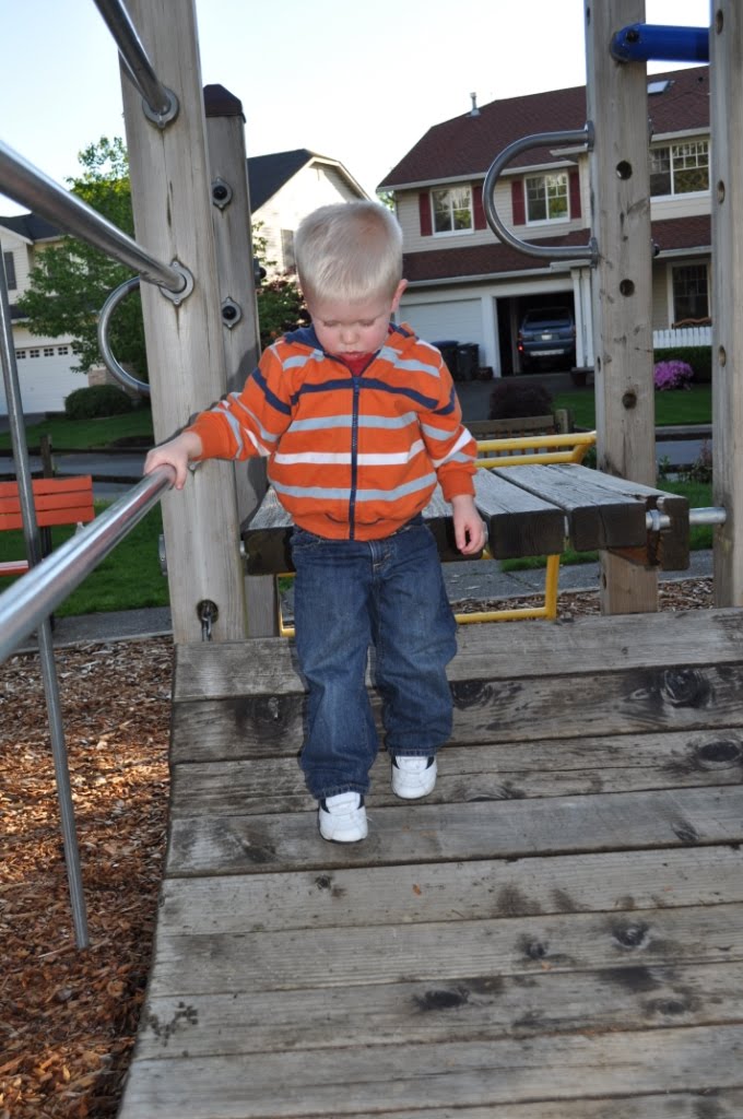 After dinner we walked to our neighborhood park and enjoying a break from the rain. Aly was a daredevil and climbed to the top of the fireman pole! Cole and JT were more conservative and stayed near to the ground.