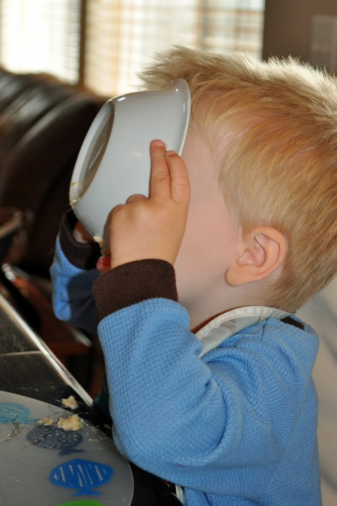 He has also learned how to get every last drop out of his bowl. 🙂 Mmmm, oatmeal.