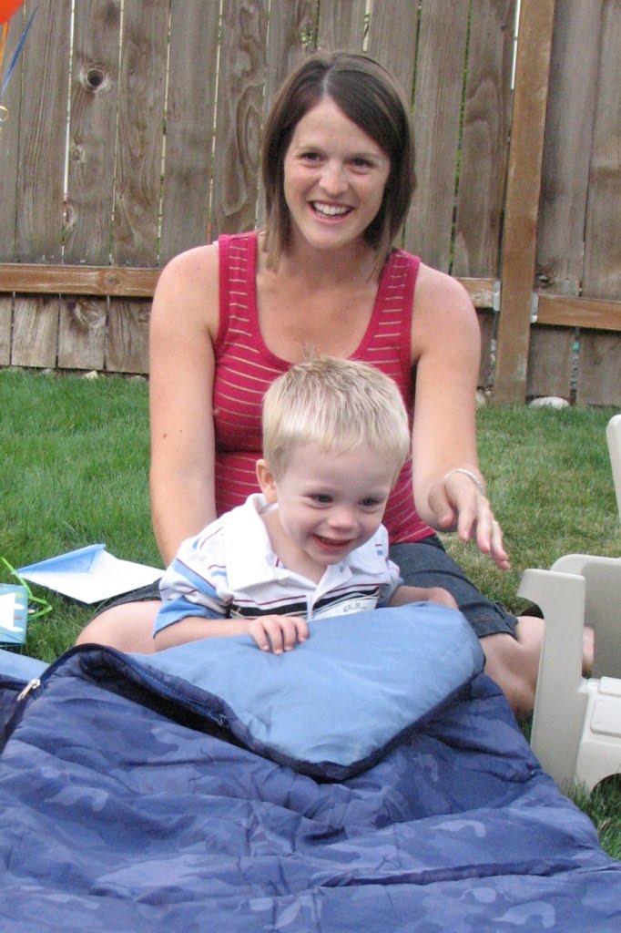 The lucky guy got lots of cool stuff: a train set, Lego set, kitchen supplies and a latch board, books, alphabet cards, and his own beach chair (pictured above). He has been sharing his room with Preston this week, so he knew just what to do with his own new sleeping bag!