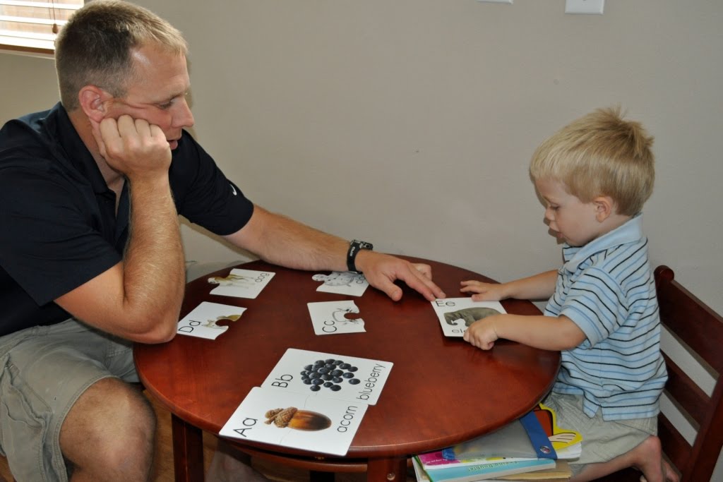 Yesterday Haley was too tired to nurse, so she got breastmilk in a bottle, and JT wanted to take it to her. He also took my empty water glass to the kitchen to Jim, and helped clear his own dishes from the table. JT’s biggest new job is learning letters. Here he and Jim are having a school session at his table. It was pretty cute to watch.