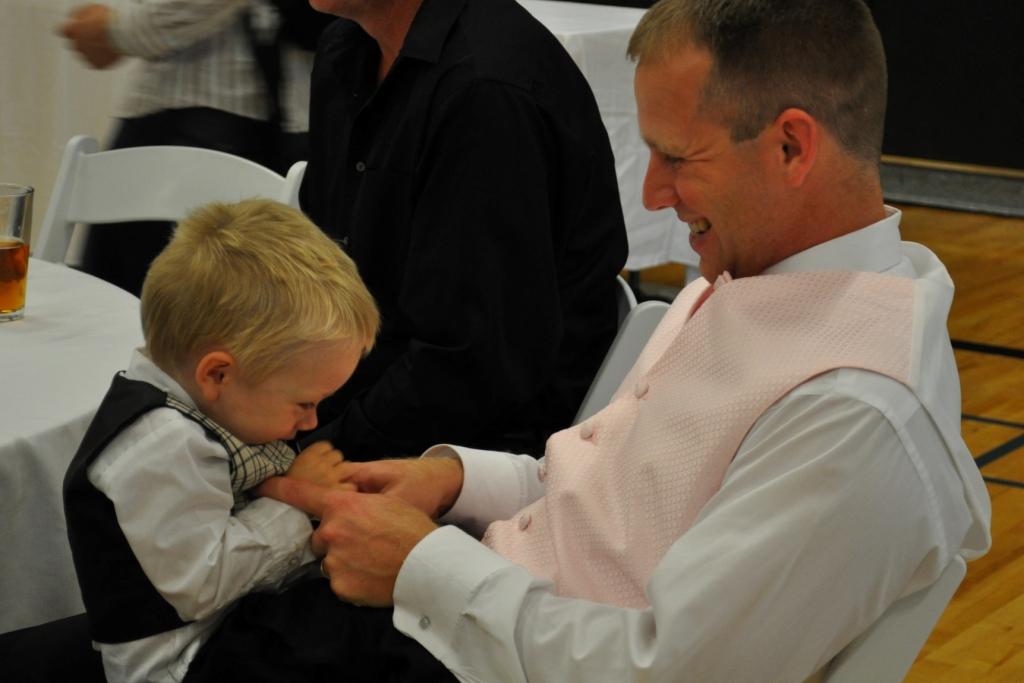 The wedding was lovely, and soon after we headed to the reception where we ate, danced, and caught up with family and friends. I have to say that we could not have made it work without the help of Grandma and Grandpa Cole. They carted our bags, held our children, drove us around, organized snack breaks, took pictures, and more. We are so thankful they were able to help us stay involved in the wedding and take care of our kids all at once! Jim and I are slowly but surely changing our zone defense to man-to-man. 🙂