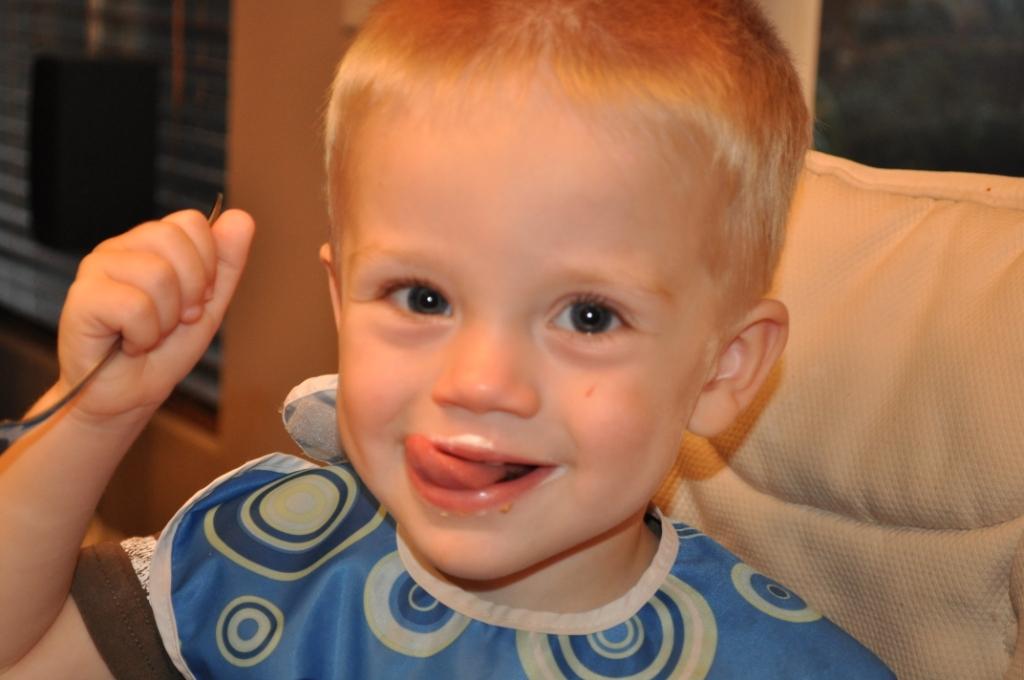 One of his other favorite things is sour cream. It has been that way for a long time. The other night we had chicken enchiladas and he pointed out that he wanted “ice cream on my enchi-ada.” I said, “Do you mean sour cream?” And he laughed – “Oh, yeah!”
