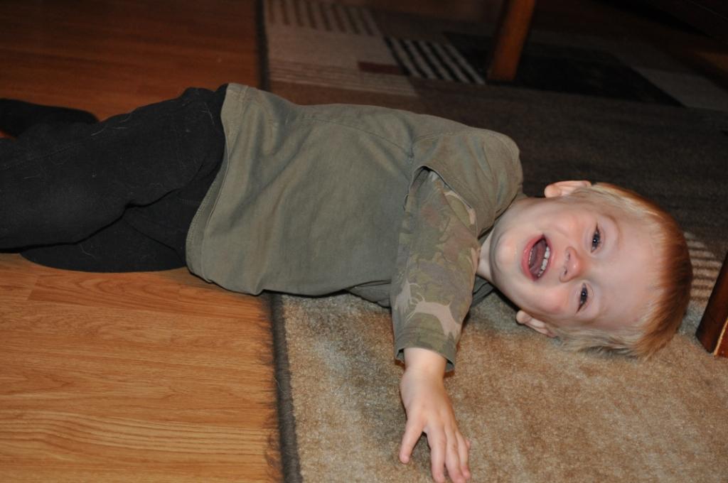 He is suddenly enraptured with parking things and careful placement of objects. (Conversations include: “Mom, my sandwich right there” and “I park truck right there.”) Recently he has started pulling out everything with wheels and lining them up in different configurations on the coffee table. They are also lined up parallel to each other and right in a row. JT was destined for a Type-A personality with Jim and I for parents. Sorry, kid.