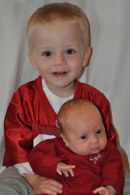 Football Saturday Posted bywe4keenesOctober 3, 2010Posted inUncategorized We just loved watching Alabama roll over Florida in today’s game. Even though no one is here to notice, the whole family wears colors to watch the game. I took a moment to get a big brother/little sister picture before kick-off! Related