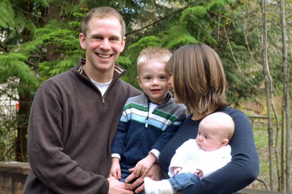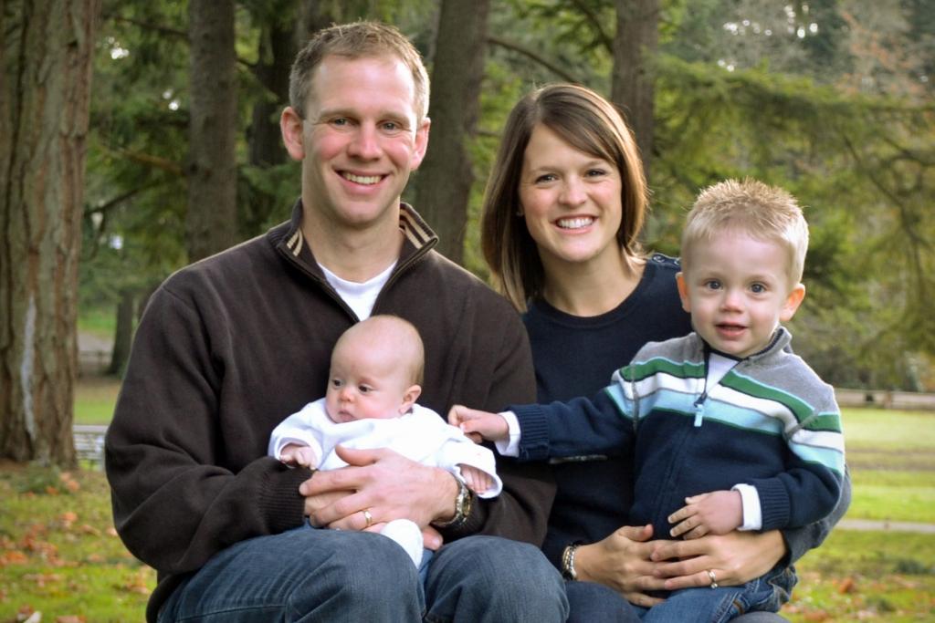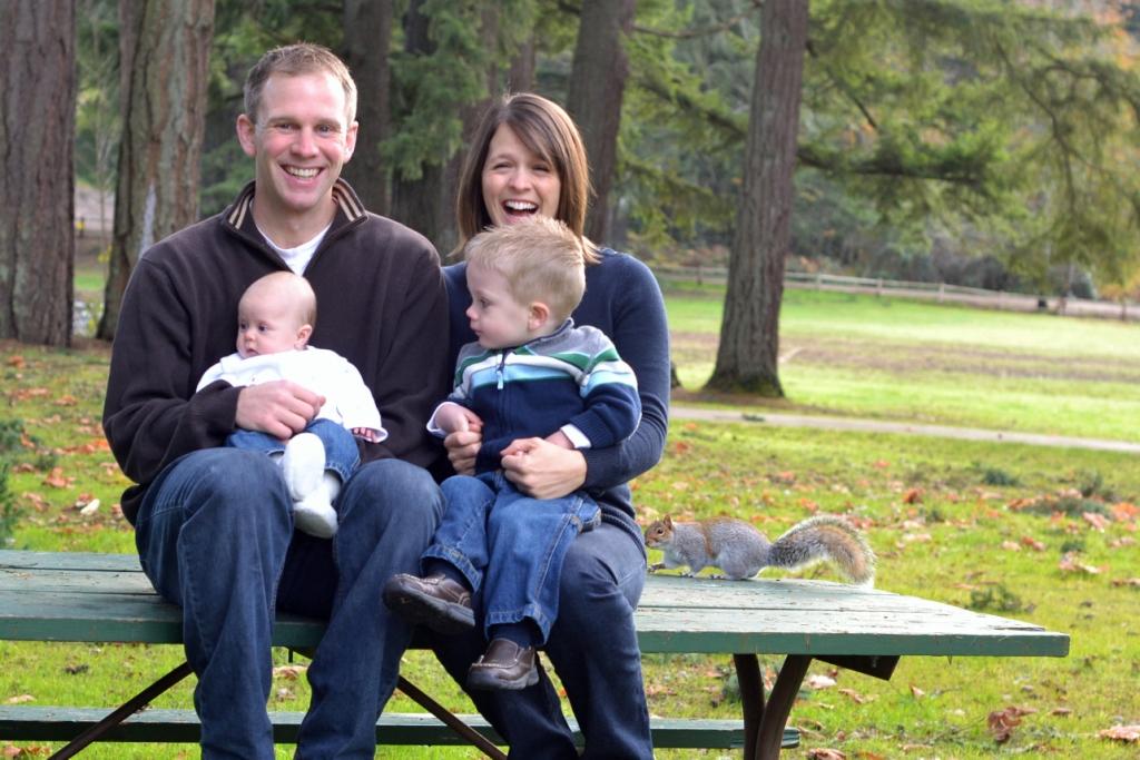 I’ve been wanting to get a picture of the four of us to put up in our house to replace the picture without Haley, and we also wanted a Christmas card picture. It is tough to schedule a photo shoot between Jim’s schedule and naptimes, but we managed. The weather cooperated too! I paid a high school student who I had as a seventh grader to come take our pictures. We are very happy with the results! It is so hard to get a decent picture of an infant… I am just happy she was awake and isn’t all flopped over. 🙂