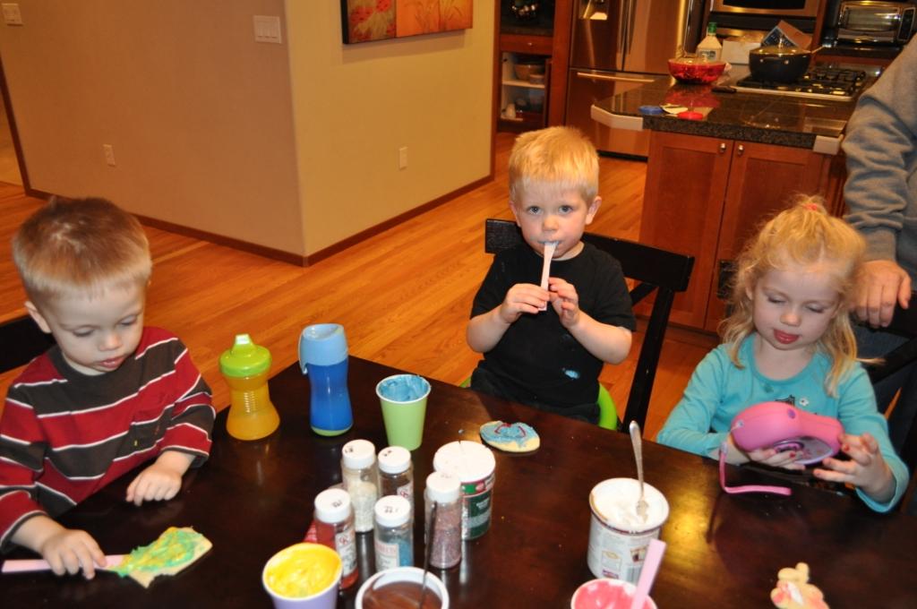 The kids loved decorating their cookies. Here you can see Cole sneaking a lick off his decorating knife! JT gave Cole a new garbage truck from Toy Story 3. This information is important if you watch the Christmas montage video! Aly loved her new digital camera from us, and took over 100 pictures in under two hours. There was a lot of “say cheese!”