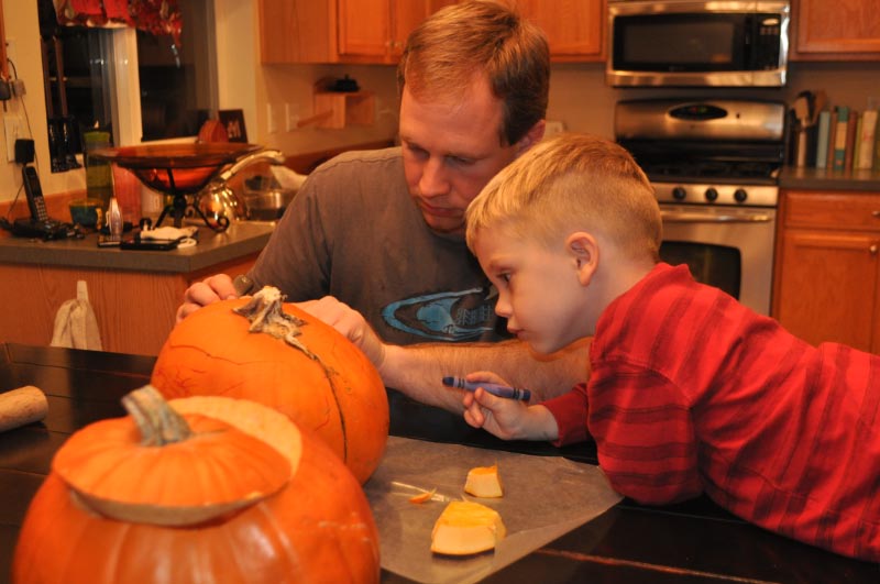 Then we carved pumpkins a night later. JT had picked out the pumpkins at a farm with Grandpa and Grandma Cole, and he’d already carved one. They left one for us to do as a family. Thoughtful!