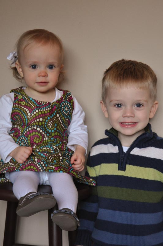 Here she is wearing a dress I made her (!) on Sunday. It turned out pretty well but it cost me $8 in materials and three hours of time… not sure whether or not I’ll do that again. I really thought it would be easier. Next time I might not worry about making it fully lined. Anyway, I love the fabric and the green buttons!