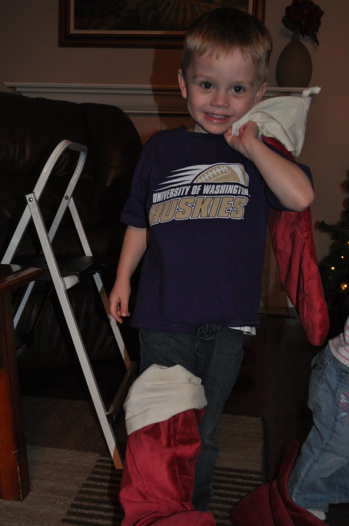JT helped me put up the tree and many of the decorations this year. He thought wearing the stockings on his feet like socks was hilarious. We have the tree lights plugged into an outlet that is controlled by a light switch so JT’s job is to turn the lights on everyday. He takes it very seriously.