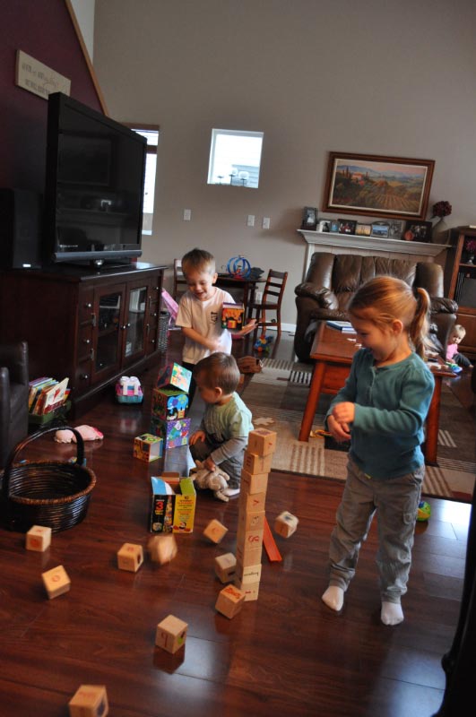 Friday morning our friends Gracie and Tyson came over to play extra early. So we stayed in our pajamas and had pancakes together… yum! I don’t have any pictures of that, but I do have pictures of the play time that followed.