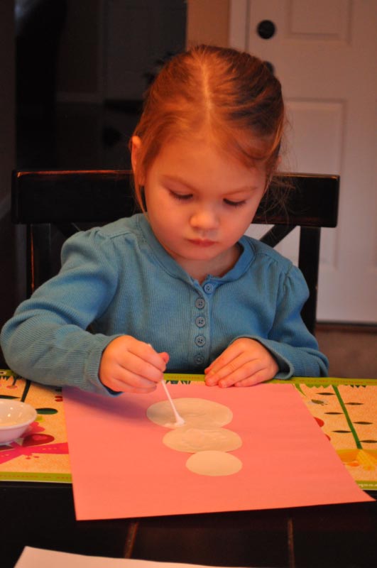 We did a snowman craft that involved glue (applied via q-tip), cotton balls, toothpicks, and glitter. At one point Gracie said, “You’re my best friend in the whole world.” I commented to JT how kind that was and asked him to say something back. Gracie then clarified, “No, I was talking to you.” My new BFF! I think she was just happy about the glitter.