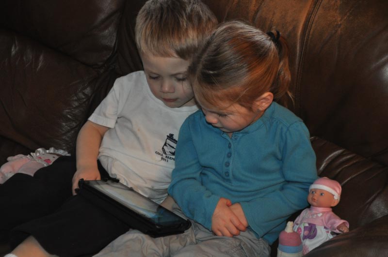When Tyson and Haley needed some snuggle time and it was close to pick-up time, Gracie and JT watched a Word World on my Kindle Fire together. Sweet.